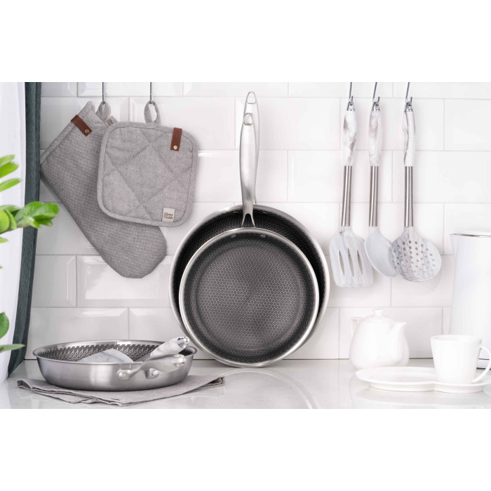 Виготовлена з нержавіючої сталі за технологією Triply, сковорода має протипригарне покриття, стійке до подряпин. Можна використовувати металеві аксесуари. Виріб можна мити в посудомийній машині. Діаметр моделі становить ... 		Читати далі...