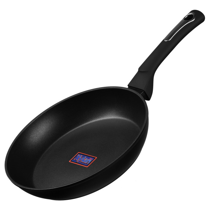 Алюмінієва сковорода чорного кольору з багатошаровим антипригарним покриттям Xylan Plus® та термостійкою бакелітовою ручкою. Сковорода Gemini сумісна з усіма видами плит.
