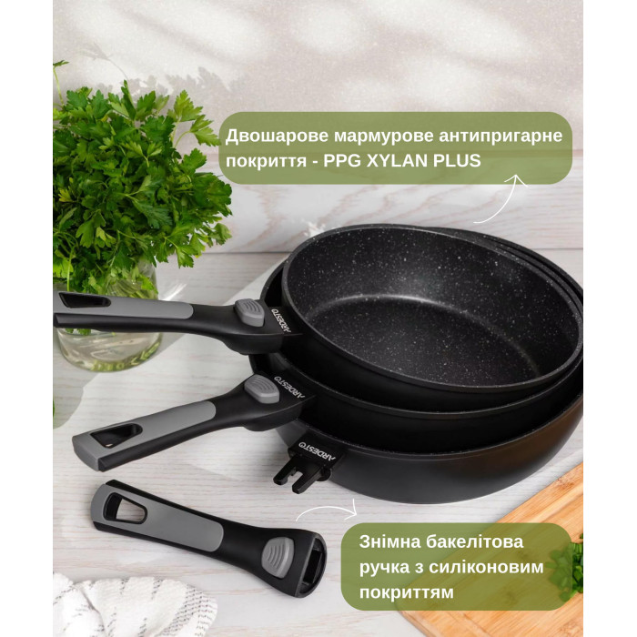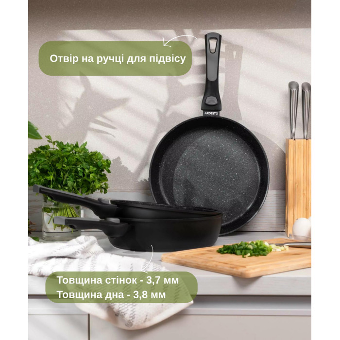 Сковорода глибока зі знімною ручкою ARDESTO Gemini Bari, 26см, алюміній, чорний