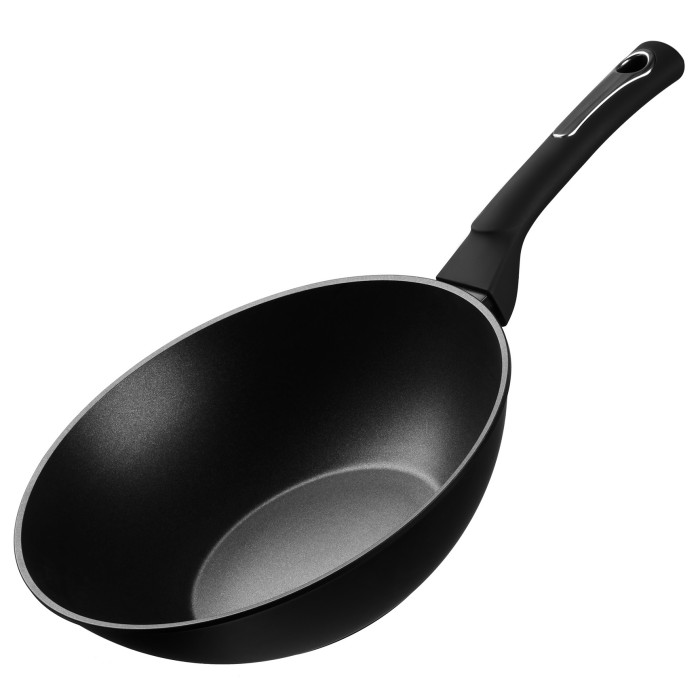 Сковорода WOK серії Gemini виготовлена з кованого алюмінію у чорному кольорі. У серії посуду Gemini використовується антипригарне покриття Xylan Plus 2. Ручка виготовлена з бакеліта з Soft-touch покриттям. Сковорода сумісна з усіма видами плит, включаючи індукційну.