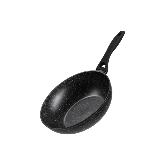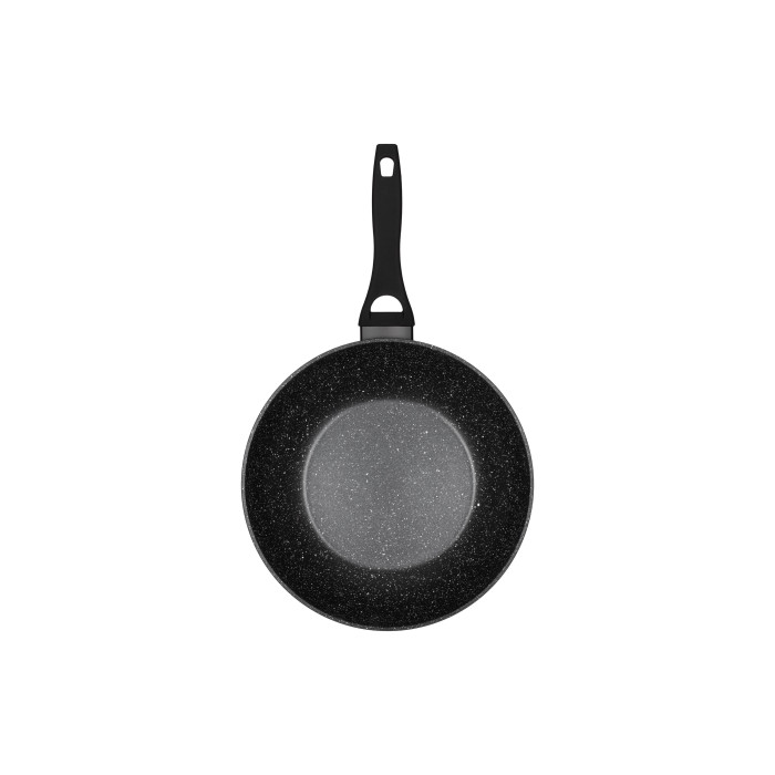 Сковорода WOK серії Gemini Gourmet Anzio виготовлена з кованого алюмінію у чорному кольорі. У серії посуду Gemini Gourmet використовується мармурове антипригарне покриття. Ручка виготовлена з бакеліта з Soft-touch покриттям. Сковорода сумісна з усіма видами плит, включаючи індукційну.