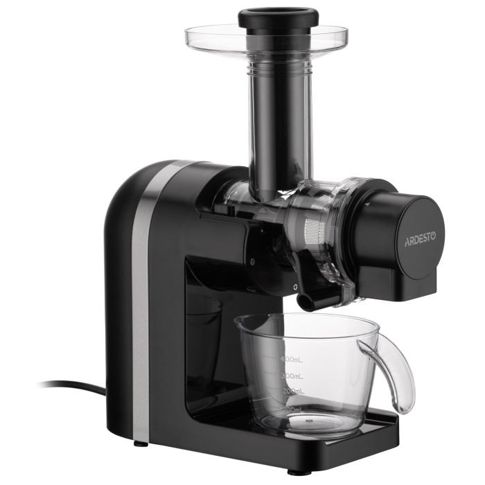 Соковитискач ARDESTO шнековий 200Вт, чаша-0.6л, жмих-0.7л, пластик/метал, чорно-сріблястий