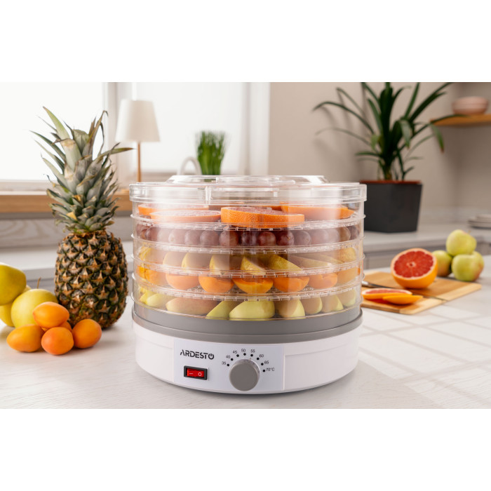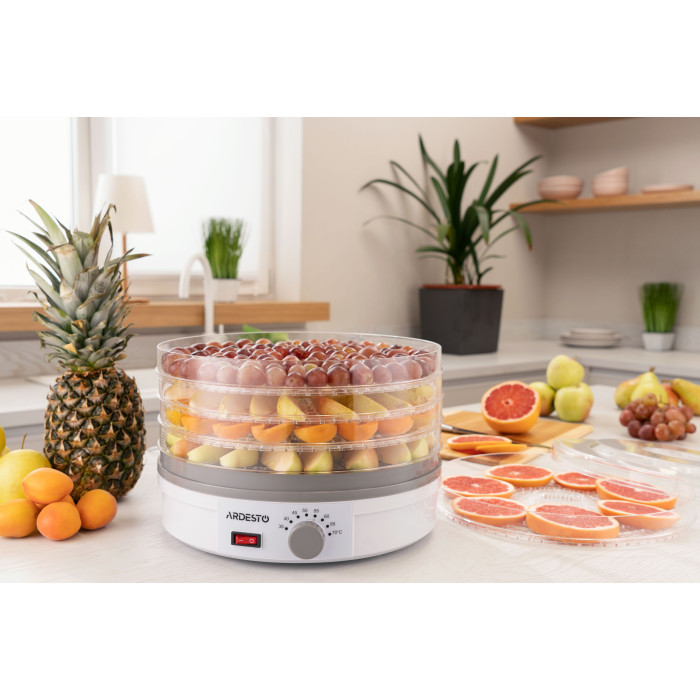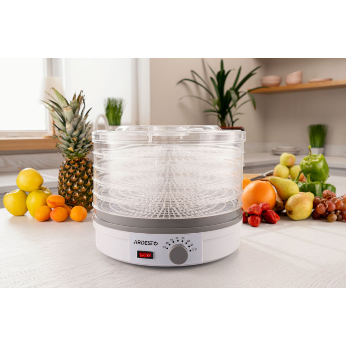 ARDESTO Сушарка для продуктів FDB-5320, 245Вт, піддонів -5x3см, діаметр-32см, макс-70°С, рег.темп, пластик , білий