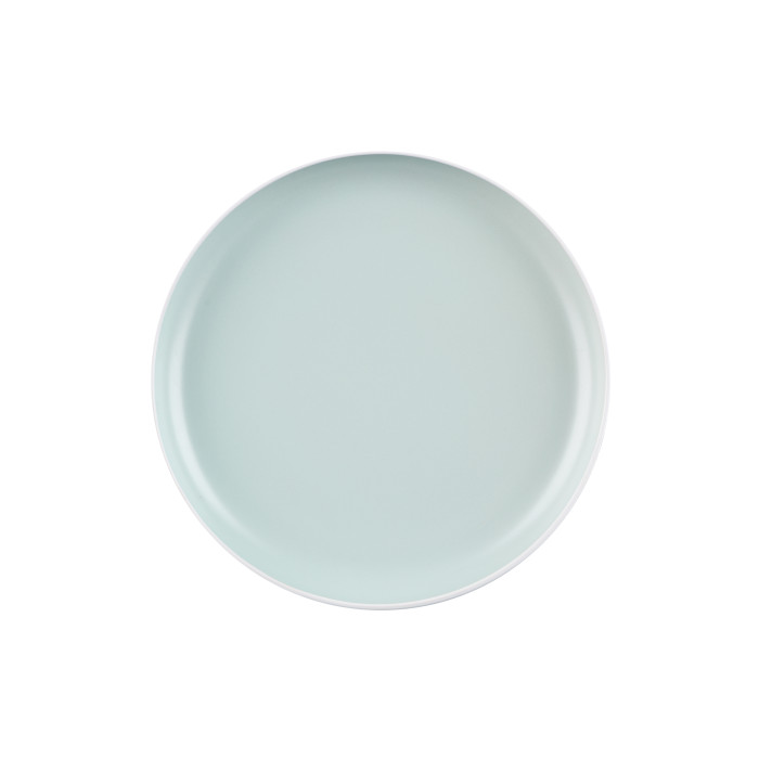 Керамічна обідня тарілка пастельного блакитного кольору діаметром 26,5 см. Виготовлено з екологічно чистого матеріалу. Можна мити в посудомийній машині та використовувати в мікрохвильовій печі.