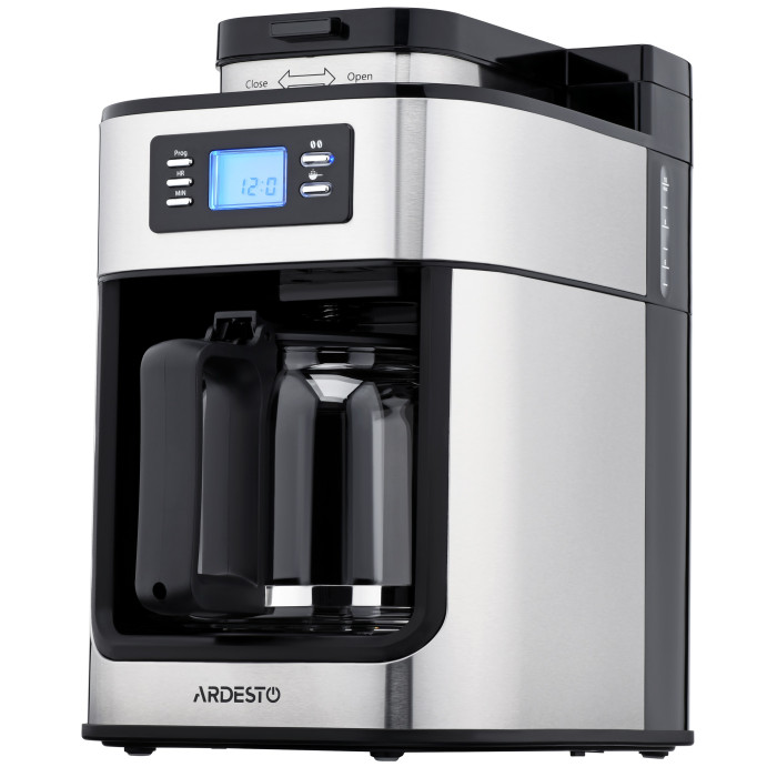 Кавоварка ARDESTO крапельна Steel Collection 1.2л, зерно + мелена, дисплей, сріблясто-чорний