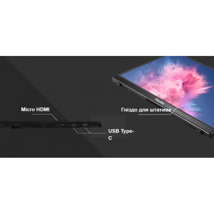 ASUS ProArt PA148CTV - це 14-дюймовий портативний монітор формату Full HD, призначений для дизайнерів, розробників та інших представників творчих професій. Зручний контролер ASUS Dial і віртуальна панель управління спрощ... Читати далі...