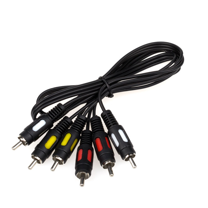 Аудіо-кабель Atcom 3хRCA - 3хRCA (M/M), 0.8 м, чорний (10808) пакет
