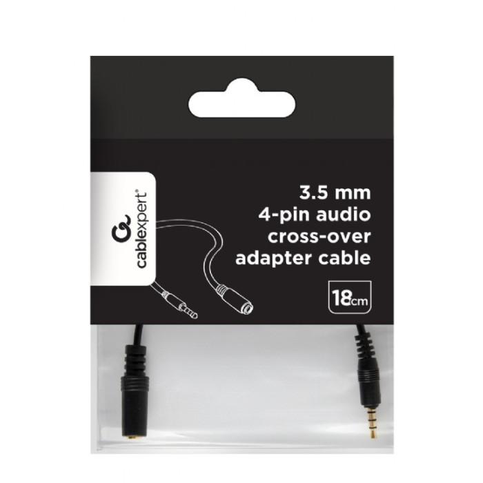 Аудіо-кабель Gembird CCA-419 3.5 мм - 3.5 мм (M/F), кросовер контактів GND і MIC, 0.18 м, чорний