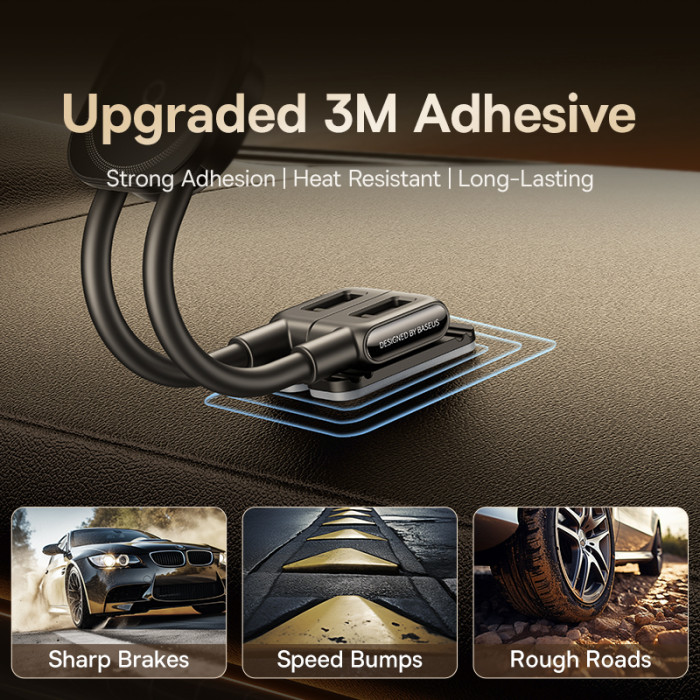 Автомобільний тримач Baseus PrimeTrip C03s Magnetic Car Mount (Stick-on Type, Cosmic Black) — це оригінальний автомобільний тримач із нестандартною конструкцією, розроблений для тих, хто цінує функціональність, мінімалізм і естетику.Модель відрізняється ультракомпактним форм-фактором і гнучкою основою, яка дає змогу змінювати положення тримача у вертикальній чи горизонтальній площині. Завдяки такій конструкції ви можете індивідуально підібрати кут огляду без складних механізмів і шарнірів.Тримач кріпиться за допомогою якісної клейкої основи 3M, що забезпечує надійну фіксацію на приладовій панелі чи іншій рівній поверхні салону авто.
