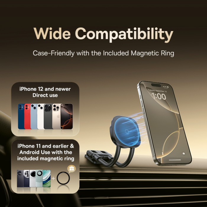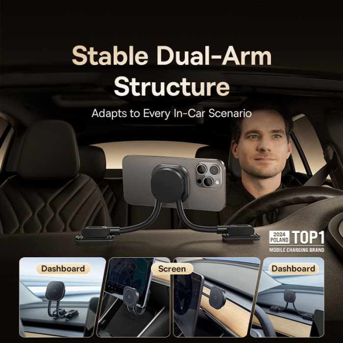 Основна перевага моделі — сильна магнітна фіксація, яка надійно утримує навіть смартфони з функцією бездротової зарядки, не впливаючи на стабільність зарядного сигналу. Металеві пластини в комплекті тонкі та легко розташовуються під чохлом, зберігаючи естетику пристрою.КЛЮЧОВІ ОСОБЛИВОСТІ:− Оригінальний дизайн із гнучкою конструкцією для регулювання положення