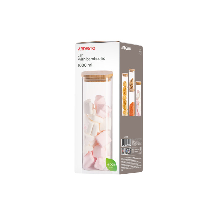 Банка для зберігання ARDESTO Midori 1000мл, скло, бамбук, квадратна, прозорий
