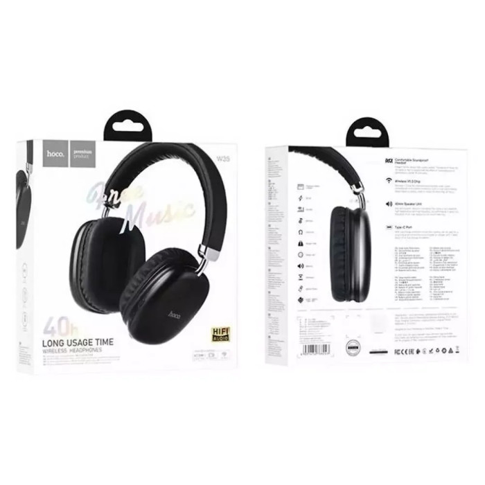 Hoco W35 — це повнорозмірні навушники, які реалізовані у вишуканому, елегантному дизайні та відрізняються відмінним звучанням.Дана модель стане чудовим вибором для використання протягом усього дня та під час пробіжок завдяки вбудованому сабвуферу. Привабливий зовнішній вигляд аксесуара надають виконані в трохи округлій прямокутній формі вушні елементи, хромовані металеві деталі та приємна на дотик текстурована поверхня амбушюр та обідка.Для виготовлення аксесуара використовуються якісні електронні компоненти, міцний, стійкий до навантажень пластик, метал та зносостійка екошкіра.Сучасні динаміки діаметром 40 мм забезпечують деталізоване звучання з ідеальним балансом усіх частот, дротовий та бездротовий зв'язок гарнітури з джерелом звуку – модуль Bluetooth V5.3 та стандартний роз'єм AUX, а її тривалу безперервну роботу протягом 40 годин – ємний полімерний акумулятор. Робота в режимі очікування може досягати 200 годин. Час заряджання – 2 години.Також модель оснащена мікрофоном, механічними кнопками керування та слотом для карт пам'яті TF.УНІВЕРСАЛЬНЕ ВИКОРИСТАННЯПідключайте навушники до будь-якого пристрою зручним для вас способом — за допомогою Bluetooth або аудіокабелю 3,5 мм. Вбудований мікрофон дозволяє використовувати їх як гарнітуру, а якщо ви вставите карту пам'яті в роз'єм TF, улюблена музика завжди буде з вами.АВТОНОМНА РОБОТАHoco W35 оснащений ємним акумулятором, заряду якого вистачить на 40 годин автономної роботи або 200 годин у режимі очікування.СЛОТ MICRO-SDРегулювання навушників за розміром голови, а також навушники, що повертається, дозволять носити навушники з максимальною зручністю. Слот для картки пам'яті Micro-SD перетворює навушники на MP3-плеєр — слухайте музику, не підключаючись до смартфона або ноутбука.ЗАРЯДКА ВІД USB-ПОРТУЯкщо у вашій гарнітурі сів акумулятор, просто підключіть до неї аудіокабель (входить до комплекту поставки) і продовжуйте слухати музику або зарядіть гарнітуру від USB-порту. Час роботи акумулятора – до 40 годин. Час роботи в режимі очікування – до 200 годин. Час зарядки – 2 години.СТИЛЬНИЙ І ЗРУЧНИЙ ДИЗАЙННавушники мають обшиті штучною шкірою амбушюри. Їхній розмір легко відрегулювати під розмір голови, а самі навушники повертаються на 90° для максимально комфортного носіння.