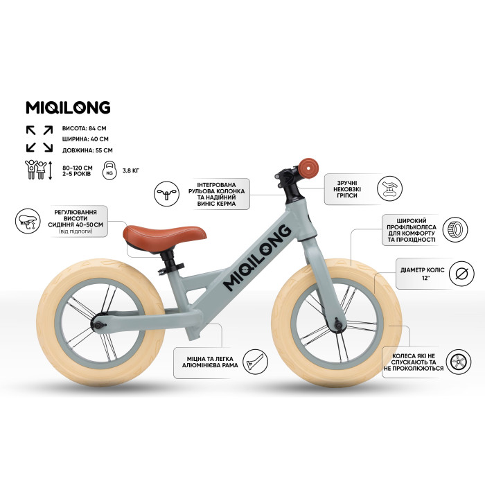 Під час створення цієї моделі Miqilong розробники ставили собі за мету зробити конструкцію легкою й міцною водночас. Вирішенням поставленої задачі став метал, без якого неможливо уявити сучасну авіацію - алюміній. Саме тому рама, як у спортивних велосипедів, виконана з алюмінію.