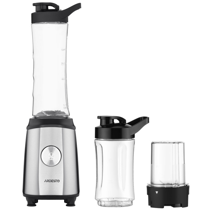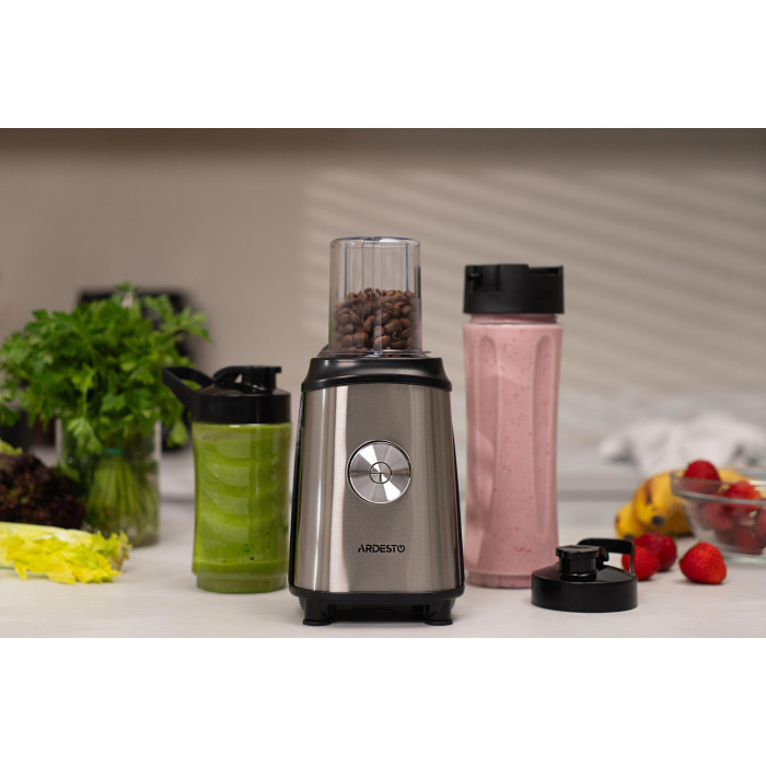Блендер для смузі Ardesto SBG-F350, 350Вт,2в1, пляшка -600мл, пляшка -300 мл, кавомолка , чорно-сріблястий