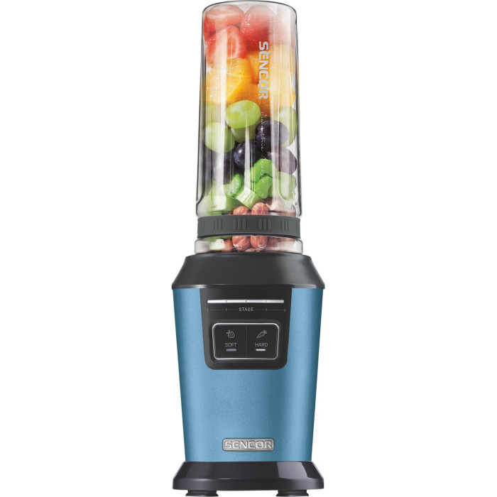 Блендер для смузі Sencor стаціонарний 800Вт, 2 ємності, чаша-600мл, титанові леза, вакуумні кришки, синій