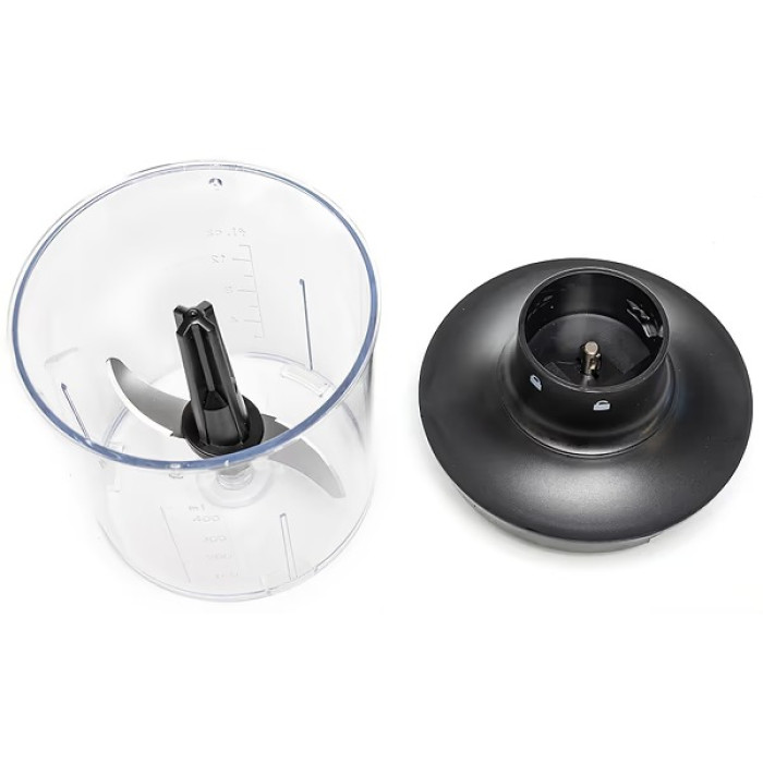 Комплектація: Ніжка блендера з ножем, віночок для збивання, скляна мірна чаша для подрібнення 400 мл.
