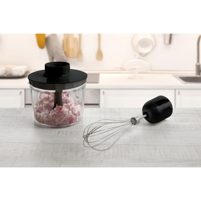Блендер заглибний Gorenje HBX1000E 3-в-1 має потужність 1000 Вт і комплектується подрібнювачем (0,5 л), чашею для змішування (0,7 л), вінчиком і металевою насадкою. Оснащений лезом з нержавіючої сталі, кнопкою Turbo, режимом імпульсної роботи та простим кріпленням насадок.