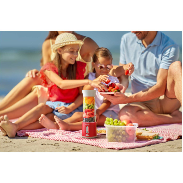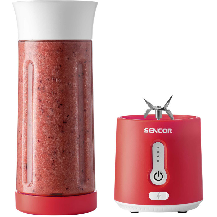 Блендер Sencor портативний для смузі 150Вт, чаша-500мл, USB-C, біло-червоний