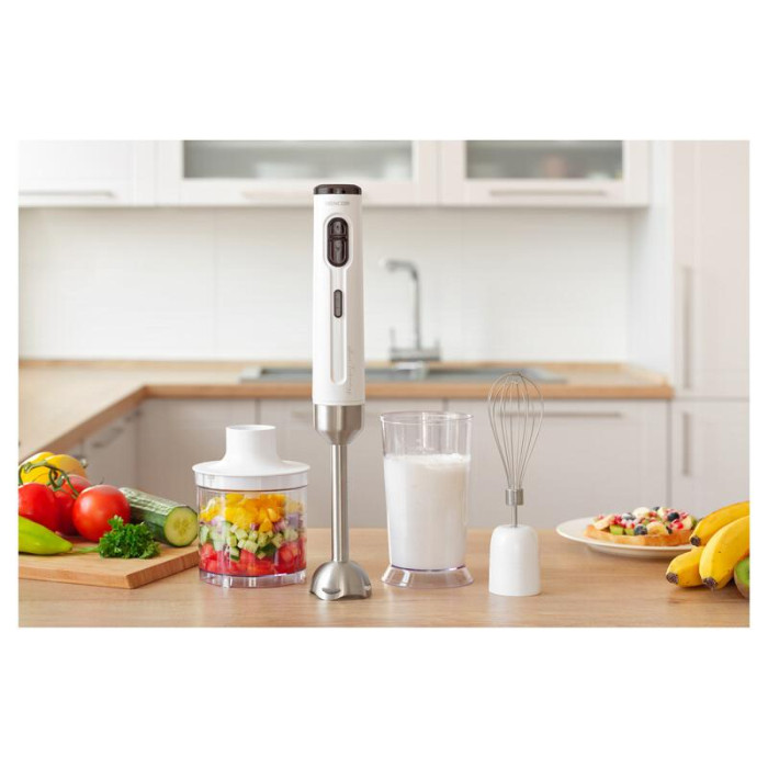 Блендер Sencor заглибний Accu technology, 200Вт, 3в1, чаша-800мл, безпровідний, USB-C, біло-сірий