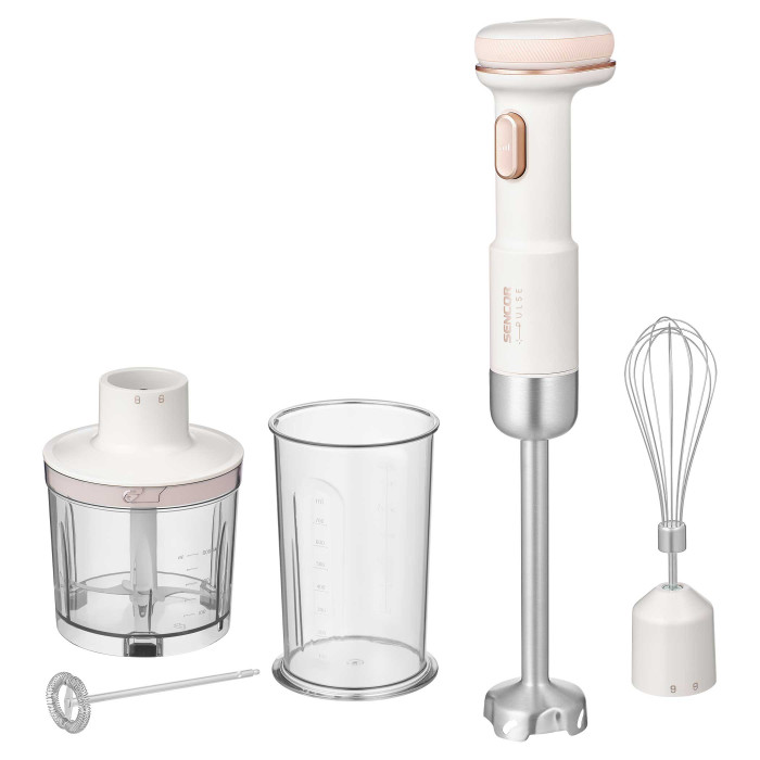 Блендер Sencor заглибний Pulse, 180Вт, 4в1, чаша-700мл, безпровідний, USB-C, капучинатор, біло-рожевий