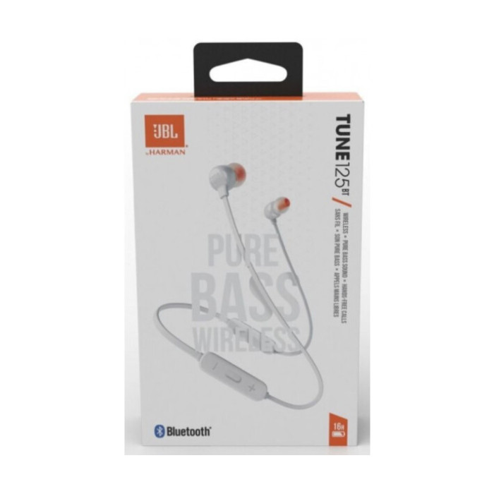 JBL TUNE 125BT з технологією JBL Pure Bass Sound - зручні бездротові навушники без втрати якості звуку, що дозволяють здійснювати/приймати дзвінки в режимі «hands-free» і працюють від акумулятора 16 годин. Уяви собі навушники, які заряджаються за 2 години, доступні в нових чудових кольорах, оснащені пласким кабелем із захистом від сплутування і які можна носити цілий день з максимальним комфортом. Додай сюди магніти для кріплення навушників, коли вони не використовуються, функцію перемикання між декількома пристроями, завдяки якій ти ніколи не пропустиш дзвінок, і ти зрозумієш, чому навушники JBL TUNE 125BT можуть стати невід'ємною частиною вашого повсякденного життя любителя музики.