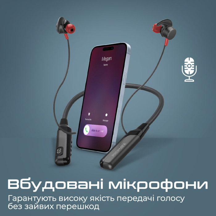 Blend від Promate – спортивні навушники для активних людей. 70 годин автономної роботи, відтворення через Bluetooth або microSD карту та неймовірна ергономіка.