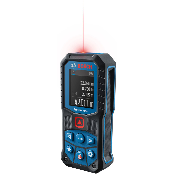 GLM 50-22 Professional витримує складні умови на будівельних майданчиках. Конструкція IP65 забезпечує повний захист від частинок пилу і струменів води, а корпус, що амортизує, забезпечує стійкість до падіння з висоти 1,5 м навіть на твердий бетон. За допомогою кнопки налаштування можна визначити улюблені функції вимірювання. Його інтуїтивно зрозумілий інтерфейс користувача підтримує 30 мов і складається з кольорового дисплея і режиму великих чисел для кращої читабельності.