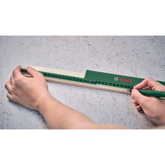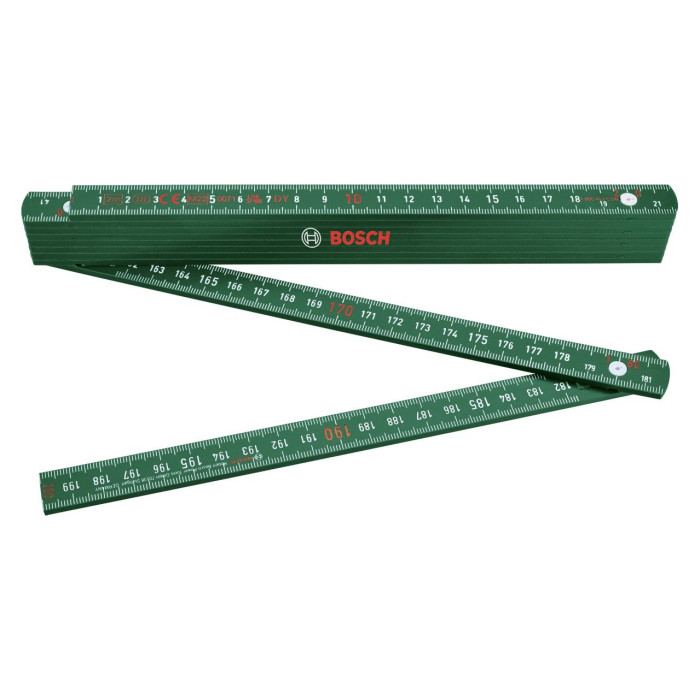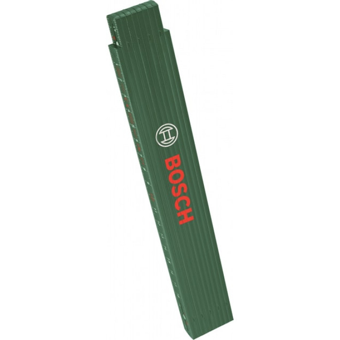 Столярні роботи, сантехнічні роботи та багато інших різноманітних завдань можна легко виконати за допомогою міцної та гнучкої 2-метрової складаної лінійки від Bosch. Цей зручний інструмент портативний і легко налаштовується для коротких і довгих відстаней завдяки кронштейнам, що розкладаються на 90°, 180° і 270°. Високоякісна лінійка Bosch виготовлена з нейлону, армованого скловолокном, що забезпечує міцність і довговічність.