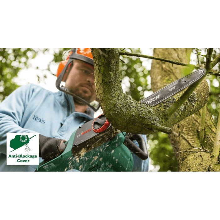 Пилка ланцюгова Bosch UniversalChain 40, 1800 Вт, 40 см, 0.375", 12 м/с, 4.3 кг 0.600.8B8.402. Ланцюгова пила UniversalChain вагою всього 4,2 кг та ергономічним дизайном для максимальної зручності користувача. Потужний двигун потужністю 1800 Вт зі швидкістю ланцюга 12 м/с забезпечує швидке різання. Компактна система SDS від Bosch дозволяє легко та без інструментів натягувати та обслуговувати ланцюги. Великий бічний масляний бак із практичною кришкою забезпечує легке заповнення автоматичної системи мастила ланцюга.