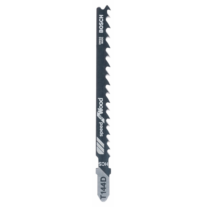 Пиляльне полотно Bosch T 144 D загальною довжиною 100 мм, з робочою частиною - 76 мм, з кроком зубів 4-5,2 мм, 6-8 TPI. Із HSC сталі з високим вмістом вуглецю. Виконує швидке, прямолінійне різання м'якої деревини та деревних матеріалів, ДВП, столярних плит товщиною 5-50 мм. В упаковці 2 шт.
