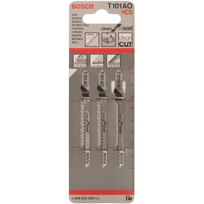 Полотно пиляльне для електролобзика Bosch Professional по дереву T 101 AO, 1.4х83мм, 3шт