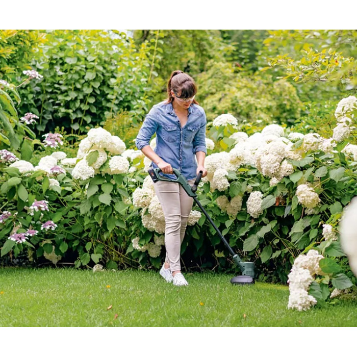 Насолоджуйтесь зручною та приємною cкошкою газону з акумуляторним тримером EasyGrassCut 18-230. Добре збалансований та легкий інструмент відрізняється простотою керування та мобільністю. Просте включення функції підрізування у верхній ручці полегшує перехід від cкошування до підрізування простим натисканням кнопки та поворотом інструмента до краю. Напівавтоматична котушка інструменту подає волосінь при кожному натисканні на кнопку пуску. З повністю зарядженим акумулятором тример здатний cкосити краї до шести тенісних кортів за один раз.