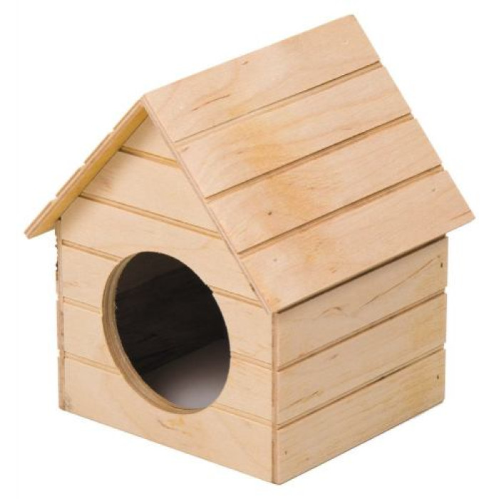 Будиночок для хом'яків та інших дрібних гризунів створює в клітці затишок і дозволяє вихованцю почуватися спокійно та впевнено, добре відпочивати, адже відсутність надійного укриття може викликати у тварини невроз та порушення сну. Також у будиночку звірята можуть ховати запаси. Фанера не вбирає запахи, будиночок не містить небезпечних для тварин металевих деталей.