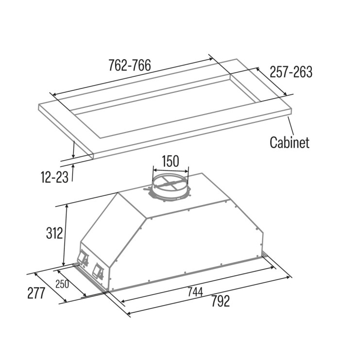 Cata Витяжка вбудована, 75см, 1200м.куб/год, Gt-Plus 75 x, нерж
