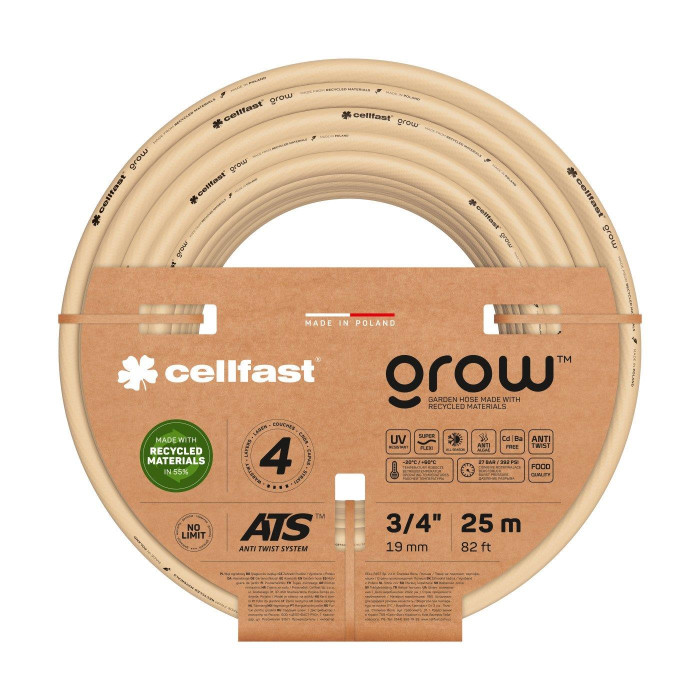 Шланг садовий Cellfast GROW 3/4" 25 м, 4 шарів, до 27 Бар, -20…+60°C (13-521)