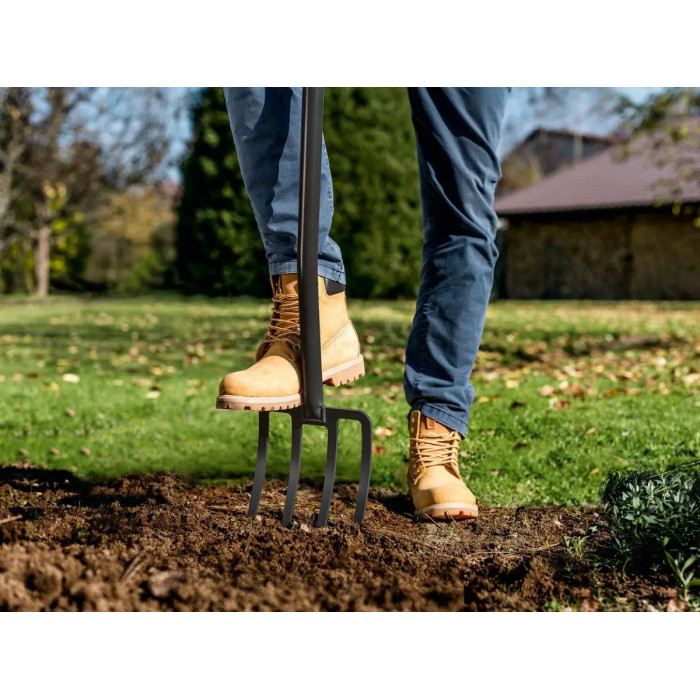 Однією з ключових особливостей вил Cellfast IDEAL є ергономічна рукоятка, яка гарантує правильне та стабільне становище під час роботи, мінімізує напругу м'язів та забезпечує комфортну роботу протягом тривалого часу. Форма рукоятки забезпечує надійне та зручне утримання інструменту, що підвищує точність та ефективність роботи. Інструмент також має надійну та міцну композитну ручку зі скловолокном, яка забезпечує довговічність та надійність інструменту. Загартовані зубці виготовлені з високоякісної борованої сталі, що гарантує їхню міцність і довговічність