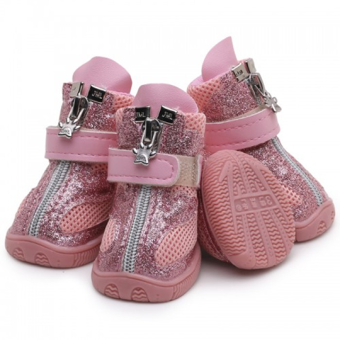 Черевики Ruispet для малих порід собак, демісезонні, 4 шт./упак. рожеві, 4,8x3,9 см, №4