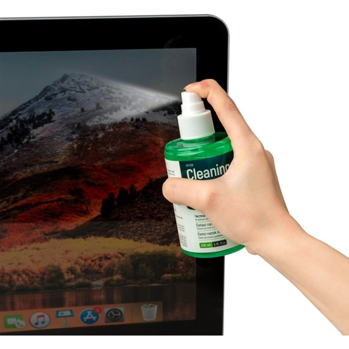 Чистяча рідина для екранів застосовується для безпечного та ефективного очищення поверхонь мобільних пристроїв, моніторів, ноутбуків, телевізорів та інших електронних пристроїв. . Завдяки спеціальному складу рідина не залишає розводів і не ушкоджує поверхню, делікатно і без пошкоджень очищає екрани або пластикові поверхні, створюючи антистатичне та антибактеріальне покриття. Безпека: Спеціально розроблена формула без агресивних хімічних речовин, що запобігає пошкодженню екранів і поверхонь. Антистатична дія: Зменшує накопичення пилу та бруду на екранах, запобігаючи їх швидкому забрудненню після очищення. Швидке висихання: Рідина швидко висихає без розводів, що забезпечує чистий і ясний вигляд екранів. Універсальність: підходить для всіх типів екранів, включаючи LCD, LED, OLED, сенсорні екрани та інші. Ергономічний дизайн пляшки: Зручний дозатор для точного нанесення рідини, що запобігає надмірному її використанню.