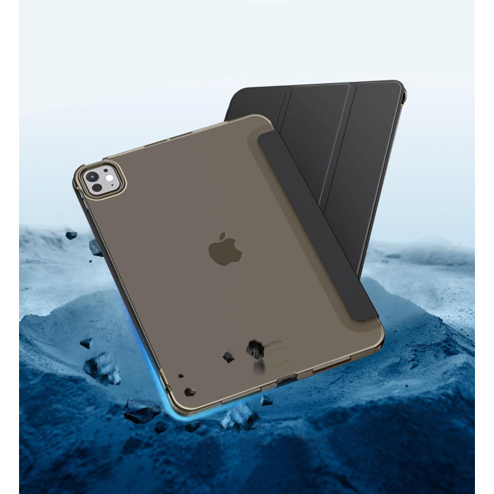 Чохол-книжка Tri Fold Hard BeCover, виготовлений із якісної штучної шкіри, задня кришка із напівпрозорого пластику.