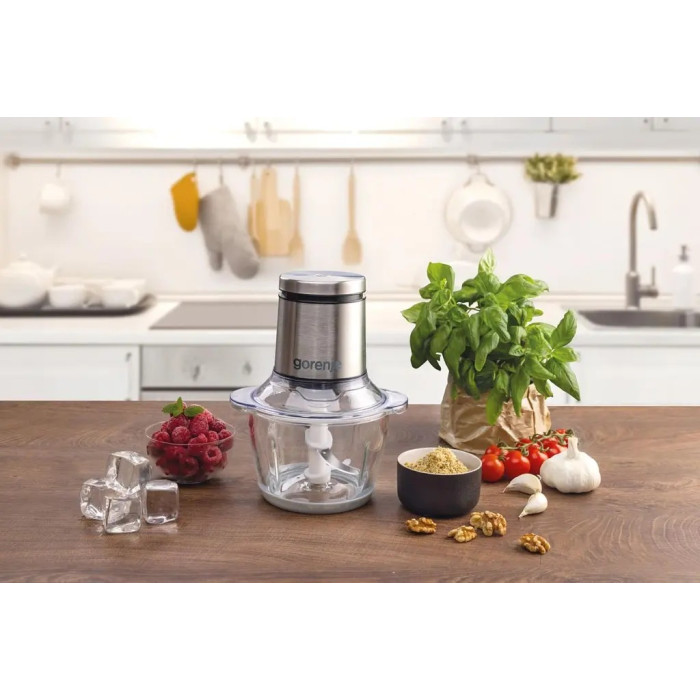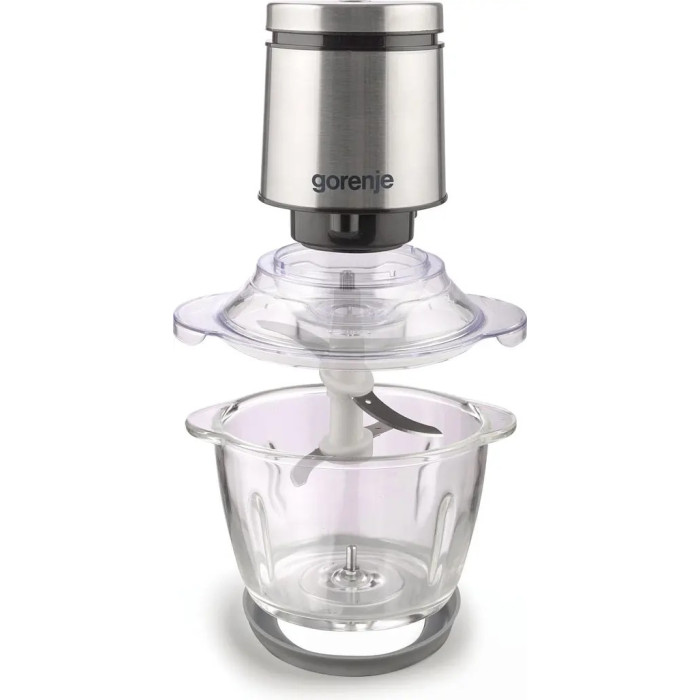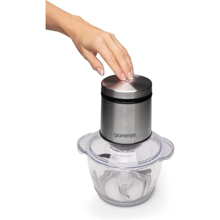 Чаша і кришка виконані з міцного термостійкого скла, корпус — з міцної нержавіючої сталі. Подрібнювач Gorenje S450E працює тільки на одній основній швидкості, проте додатково передбачено імпульсний режим.