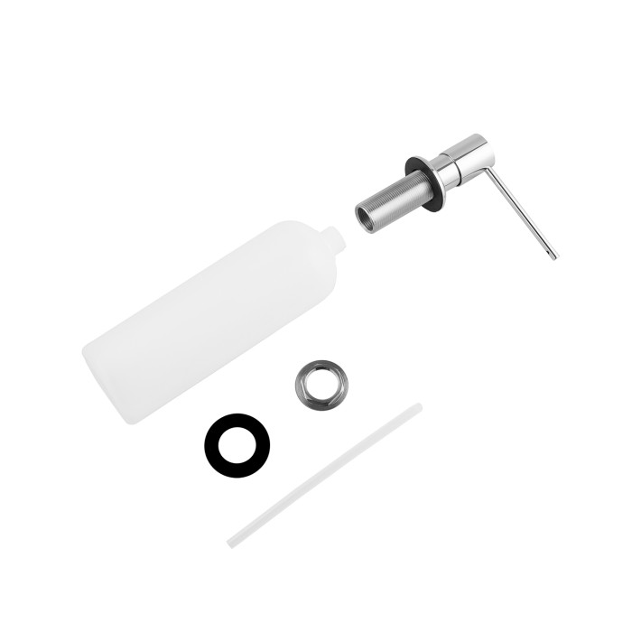 Вбудований дозатор Kroner KRP Spender - C001 стане універсальною родзинкою в інтер'єрі сучасної кухні або ванної кімнати. Диспенсер – це незамінний аксесуар, який виконує декілька функцій. По-перше, економія витрати миючого засобу або рідкого мила. По-друге, позбавляє візуального шуму. При монтажі вбудований аксесуар фіксують в отворі стільниці або мийки таким чином, щоб пластикова ємність була прихована всередині, що надає простору акуратного вигляду. Завдяки прозорим стінкам зручно контролювати витрати миючого засобу. Він складається з пластикової ємності 500 мл і помпи - з високоякісної латуні з хромованим покриттям, яка її герметично закриває. Оснащений системою подачі миючого засобу з додатковим каналом, що виключає контакт рідини з латунними деталями. Аксесуар має підвищену міцність, стійкий до агресивного впливу зовнішнього середовища та розрахований на тривалу експлуатацію. Максимальна товщина стільниці 50 мм. Діаметр отвору для встановлення 25 мм.
