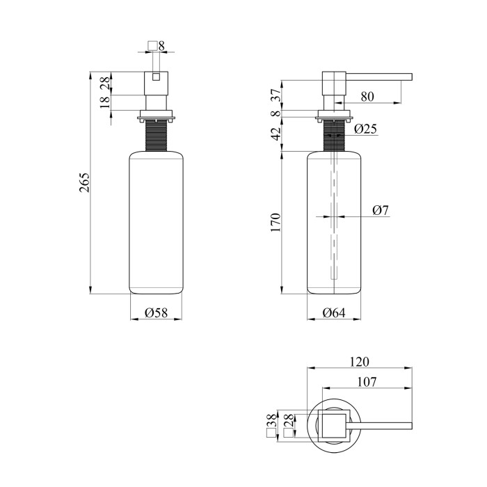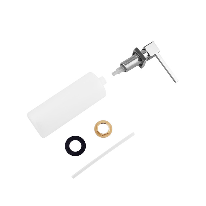 Вбудований дозатор Kroner KRP Spender - C008 стане універсальною родзинкою в інтер'єрі сучасної кухні або ванної кімнати. Диспенсер - це незамінний аксесуар, який виконує кілька функцій. По-перше, економія витрати миючого засобу або рідкого мила. По-друге, позбавляє візуального шуму. При монтажі вбудований аксесуар фіксують в отворі стільниці або мийки таким чином, щоб пластикова ємність була прихована всередині, що надає простору акуратного вигляду. Завдяки прозорим стінкам зручно контролювати витрати миючого засобу. Він складається з пластикової ємності 480 мл і помпи - з високоякісної латуні з хромованим покриттям, яка її герметично закриває. Оснащений системою подачі миючого засобу з додатковим каналом, що виключає контакт рідини з латунними деталями. Аксесуар має підвищену міцність, стійкий до агресивного впливу зовнішнього середовища та розрахований на тривалу експлуатацію. Максимальна товщина стільниці 50 мм. Діаметр отвору для встановлення 25 мм.