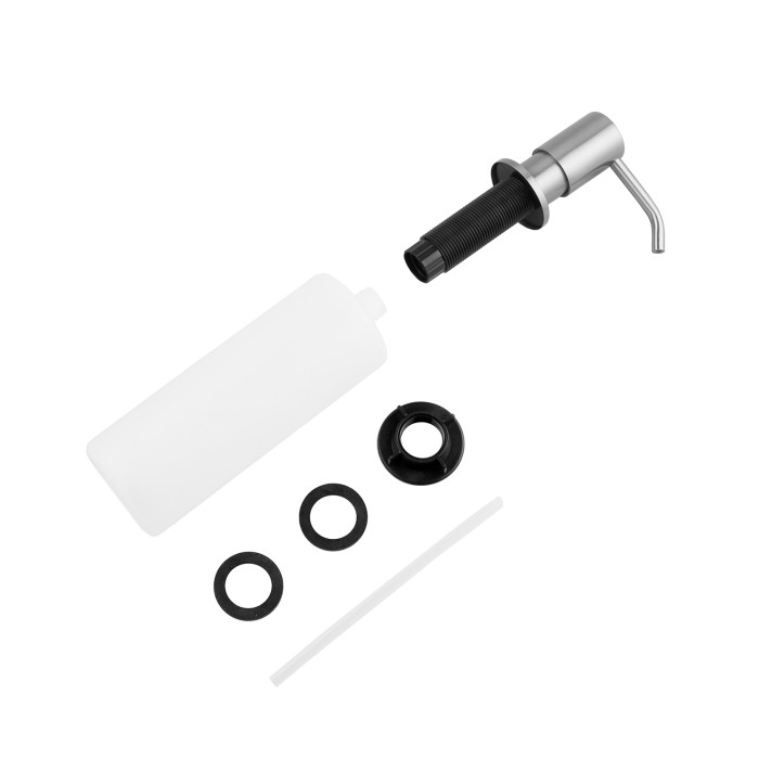 Вбудований дозатор Kroner KRP Spender - ECG049 стане універсальною родзинкою в інтер'єрі сучасної кухні або ванної кімнати. Диспенсер - це незамінний аксесуар, який виконує кілька функцій. По-перше, економія витрати миючого засобу або рідкого мила. По-друге, позбавляє візуального шуму. При монтажі аксесуар, що вбудовується, фіксують в отворі стільниці або мийки таким чином, щоб пластикова ємність була прихована всередині, що надає простору акуратний вигляд. Завдяки прозорим стінкам зручно контролювати витрати миючого засобу. Він складається з пластикової ємності 480 мл і помпи - з високоякісної нержавіючої сталі, яка її герметично закриває. Оснащений системою подачі миючого засобу з додатковим каналом, що виключає контакт рідини з латунними деталями. Аксесуар має підвищену міцність, стійкий до агресивного впливу зовнішнього середовища та розрахований на тривалу експлуатацію. Максимальна товщина стільниці 60 мм. Діаметр отвору для встановлення 25 мм.