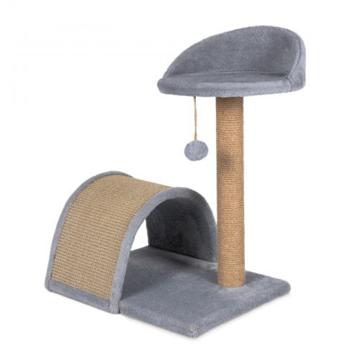 Дряпка з укриттям-аркою, стовпчиком і майданчиком для відпочинку - це справжнє ігрове містечко для вашого муркотика. В укритті котик зможе відпочити, на верхній частині арки є вставка з сизалю, на якій зручно точити кігтики. Майданчик з невисоким бортиком і іграшкою-помпоном, розміщеному на стовпчику, буде улюбленим місцем відпочинку. Оббивка - штучне хутро, яке добре чиститься і не сиплеться.