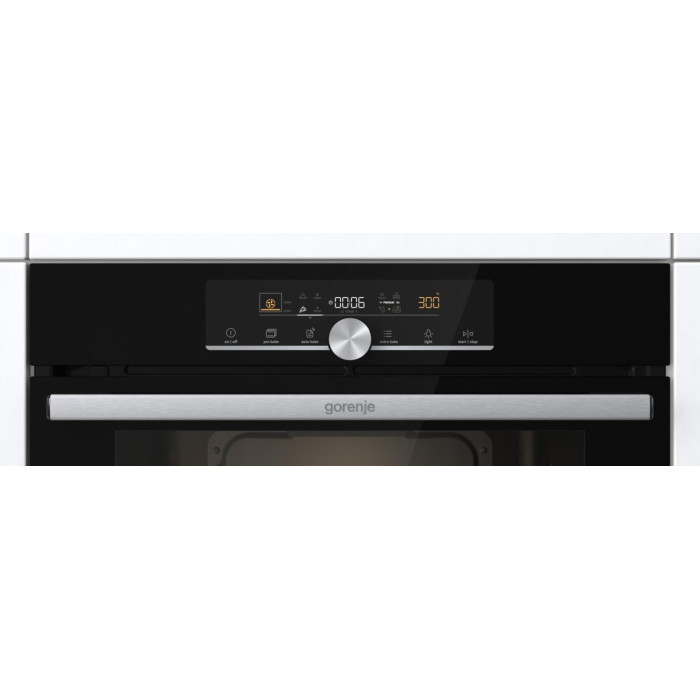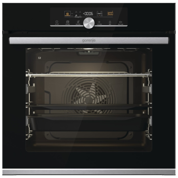 Духова шафа Gorenje електрична, 77л, A+, дисплей, покрокове випікання, чорний