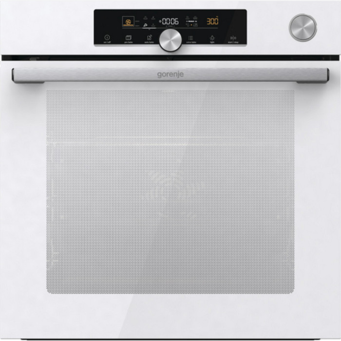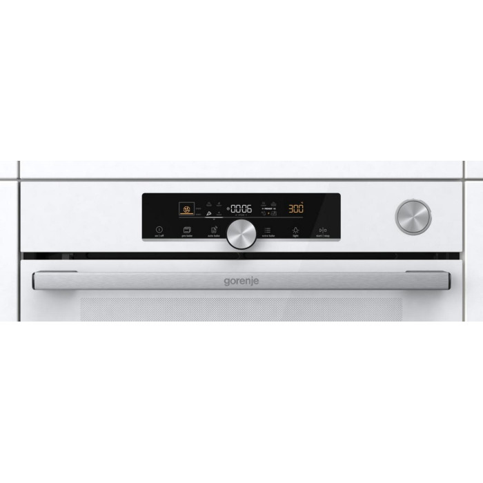 Духова шафа Gorenje електрична, 77л, A+, пара, дисплей, готування на різних рівнях, піроліз, білий