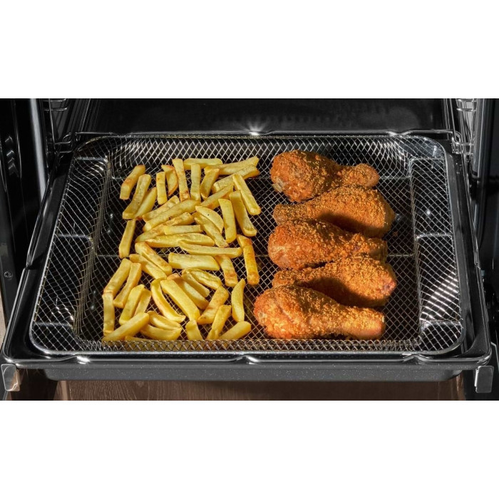 Hansa BOES68471 – це електрична духова шафа об'ємом 77 літрів, яка поєднує ефективність і зручність. Завдяки конвекції тепло рівномірно розподіляється, що забезпечує ідеальне приготування страв. Інтуїтивний електронний дисплей дозволяє точно контролювати налаштування.