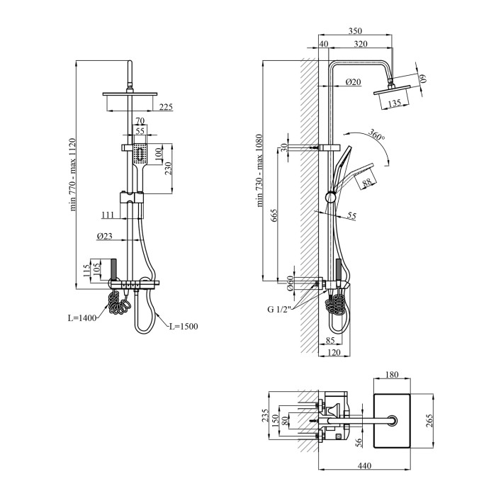 Штанга, що регулюється: Душову штангу можна регулювати по висоті, щоб відповідати потребам усіх членів сім'ї.