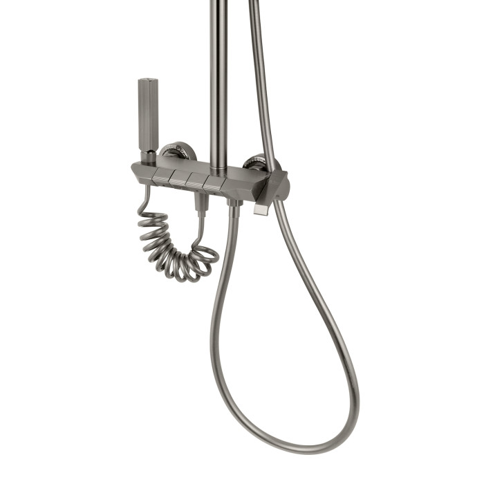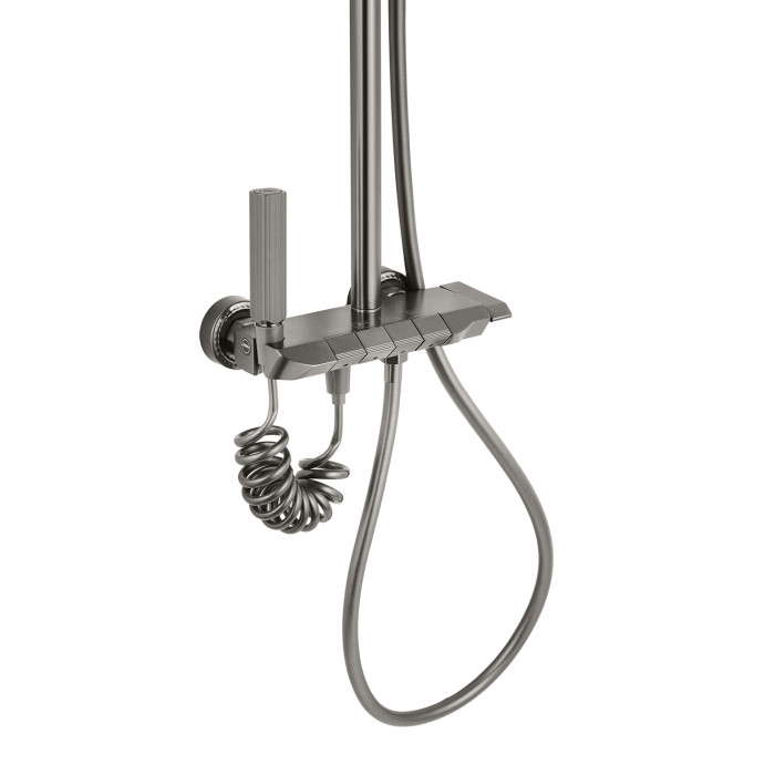 Колірне рішення: Душова система доступна в елегантному графітовому кольорі, який відмінно впишеться в інтер'єр ванної кімнати.