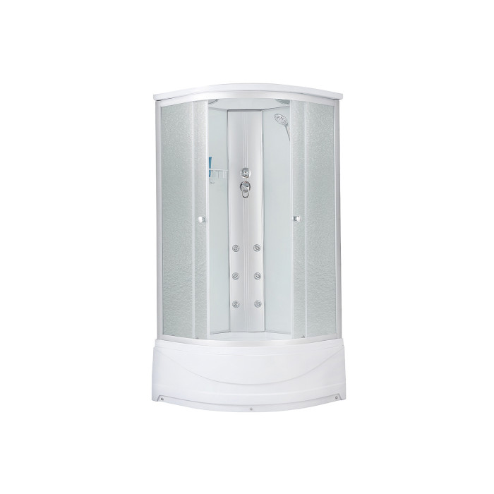 Душовий бокс Kroner KRP Armada - WD.C.T.F. 90x90 см - це ідеальне рішення для створення комфортного та сучасного душового простору у вашій ванній кімнаті. Бокс має розміри 90x90 см і форму чверті кола, що робить його ідеальним варіантом для ванних кімнат обмеженого простору. Конструкція дверей - розсувна, матеріал - скло. Двері мають рифлену текстуру, що додає якісний стиль та забезпечує приватність під час душу. Піддон має висоту 415 мм та виготовлений із високоякісного акрилу, що робить його міцним і довговічним. Глибина піддону становить 310 мм, що забезпечує комфорт під час прийому душу. До комплекту душового боксу входить велика кількість необхідних елементів, таких як сифон, двері, ручки, ролики, профіль, кришка, задні стінки, душова панель з гідромасажними форсунками, змішувач, лійка для ручного душу, лійка для верхнього душу, душовий шланг, кронштейн для ручного душу, шлангове під‘єднання, ніжки, комплект кріпильних деталей та полиця. Це забезпечує повну функціональність та зручність використання.